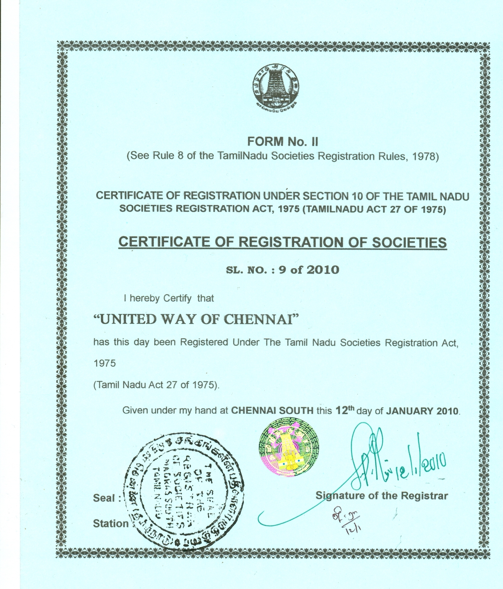 Registration Certificate
